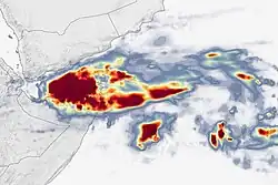 Ciclone Gati pouco depois do pico de intensidade aproximando-se da Somalia em 22 novembro | |