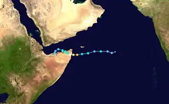 Chuvas torrenciais, ventos prejudiciais e tempestades impactaram áreas do norte da Somália, principalmente em Puntland.[22][23] O total de chuvas em 24 horas atingiu 128 mm (5,0 in) em Bosaso e 103 mm (4,1 in) no distrito de Balidhidhin. Grandes danos ocorreram em Bari, com pelo menos 642 casas destruídas e comunicação perdida com várias comunidades.[23][24][25] Estima-se que 180.000 pessoas foram diretamente afetadas pelo ciclone, incluindo 42.000 que foram deslocadas de suas casas.[26] Poços de água doce em Hafun, Taageer e Qandala foram inundados pelas inundações.[23][27] Pelo menos seis pessoas ficaram feridas em Hafun, incluindo o comissário distrital Mohamud Yusuf Garow, devido ao colapso de edifícios.[28] Pelo menos 8 pescadores foram mortos na costa de Hafun, enquanto outros 30 continuam desaparecidos.[23][29][30] Mais para o interior, as comunidades do deserto de Ashira e Hordio foram diretamente impactadas pelo núcleo do ciclone.[15] Estima-se que 10.000 animais foram mortos em Ufeyn.[31] Em Sanaag, cerca de 950 cabeças de gado foram mortas por Gati.[32] As inundações em Bosaso interromperam o transporte.[33] Uma ponte foi danificada entre as cidades de Maydh e Heis.[32]