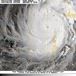 O ciclone Mala em 28 de Abril perto de seu pico de intensidade | |