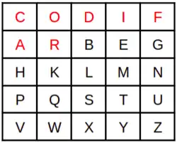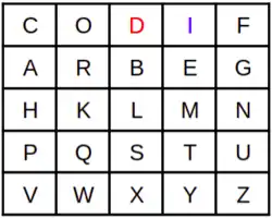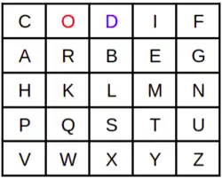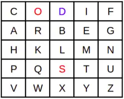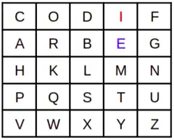 - Se um par for formado por letras iguais, a segunda letra deve ser colocada no par seguinte e adiciona-se uma "letra falsa" (normalmente X ou Z).
