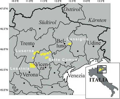 • As Treze Comunidades] ( Dreizehn Komoin ), atualmente apenas a aldeia de Giazza (Ljetzan)