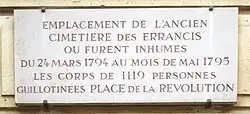 O cemitério foi usado para os sepultamentos das vítimas da guilhotina depois que o Cimetière de la Madeleine foi fechado. Foi usado para este propósito entre 25 de março de 1793 até o final de maio de 1795. A placa memorial, localizada na Rue de Monceau entre o número 97 e a esquina com a Rue de Rocher, informa que 1.119 vítimas da guilhotina foram sepultadas no cemitério.