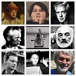Diretores ucranianos proeminentes incluem Oleksandr Dovzhenko, Dziga Vertov e Serhiy Paradzhanov . Dovzhenko é frequentemente citado como um dos mais importantes primeiros cineastas soviéticos,[6][7] além de ser um pioneiro da teoria da montagem soviética e fundador da Dovzhenko Film Studios . Em 1927, Dziga Vertov mudou-se de Moscou para a Ucrânia . No estúdio de cinema VUFKU realizou vários documentários de vanguarda, entre eles The Eleventh Year, Man with a Movie Camera e o primeiro documentário sonoro ucraniano Enthusiasm (Symphony of the Donbass) . Paradzhanov foi um diretor de cinema e artista armênio que fez contribuições significativas para o cinema ucraniano, armênio e georgiano ; ele inventou seu próprio estilo cinematográfico, o cinema poético ucraniano,[7] que estava totalmente em desacordo com os princípios orientadores do realismo socialista . Muitos atores de origem ucraniana alcançaram fama internacional e sucesso de crítica, incluindo Vira Kholodna, Bohdan Stupka, Sergei Makovetsky, Mike Mazurki, Natalie Wood, Danny Kaye, Jack Palance, Milla Jovovich, Olga Kurylenko e Mila Kunis .