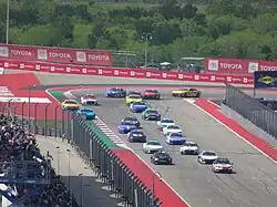- ↑ Estrada, Chris (23 de maio de 2021). «Chase Elliott wins rain-shortened inaugural COTA Cup race». NBC Sports. Consultado em 23 de maio de 2021