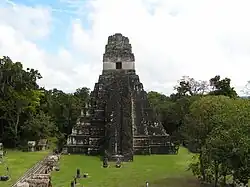 Durante o início do período clássico, cidades em toda a região maia foram influenciadas pela grande metrópole de Teotihuacan, no distante vale do México.[57] Em 378 d.C., Teotihuacan interveio decisivamente em Tikal e em outras cidades próximas, depôs seus governantes e instalou uma nova dinastia.[58][59] Essa intervenção foi liderada por Siyaj Kʼak' ("Nascido do Fogo"), que chegou a Tikal no início de 378. O rei de Tikal, Chak Tok Ichʼaak I, morreu no mesmo dia, o que sugere que houve violência.[60][61] Um ano depois, Siyaj Kʼak' supervisionou a instalação de um novo rei, Yax Nuun Ahiin I.[62] A instalação da nova dinastia levou a um período de domínio político, quando Tikal se tornou a cidade mais poderosa das planícies centrais.[62]