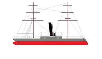 | Armamento | 2x canhões Whitworh de 120 libras 2x canhões 68 libras |