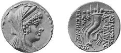 ![]() Bonn Cléópatra Thea. Léiríonn an taobh eile cornucopia. Léann an téacs (sa tSean-Ghréigis) ΒΑΣΙΛΙΣΣΗΣ ΚΛΕΟΠΑΤΡΑΣ ΘΕΑΣ ΕΥΕΤΗΡΙΑΣ | |