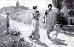 ![]() Клеомброт II та Хілоніда з дітьми. Іллюстрація з книги Хелен Гербер «The Story of the Greeks» | |