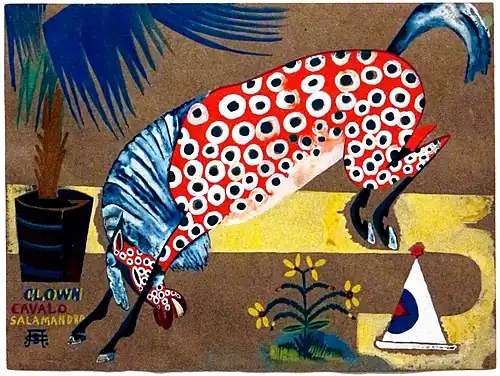 Clown, Cavalo, Salamandra é o mais reproduzido dos guaches de Amadeo, e foi, provavelmente, uma das obras incluidas na sua primeira exposição em conjunto com Modigliani que ocorreu em 1911,[1] e que contou nos convidados de honra com Apollinaire, Brancusi, Derain, Max Jacob e Picasso.[2]