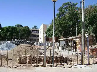 Reformas em 2009 ao redor do Coltec (edifício ao fundo), para instalação de grades em volta do colégio e remodelagem do estacionamento, que é compartilhado com a Escola de Engenharia da UFMG.