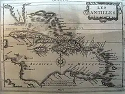 - ↑ A colônia da ilha de Tortuga ficou sob a proteção da Providence Island Company. Em 1635, uma frota espanhola transportando 250 soldados liderados por Rui Fernández de Fuenmayor invadiu Tortuga. 195 colonos foram enforcados e 39 prisioneiros e 30 escravos foram capturados[28]