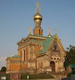 A Capela Russa de Santa Maria Madalena foi construída na parte central da colina de Mathildenhöhe, em 1899, projetada pelo arquiteto de São Petersburg Leontij Nikolajewitsch Benois, construída por artesãos da cidade e com direção dos arquitetos Gustav Jacobi e Friedrich Ollerichna. A capela foi construída a pedido do czar russo Nikolaus II, que iria se casar com a princesa Alix, irmã mais nova do Grão-Duque Ernst Ludwig. Nikolaus II queria um local para fazer o culto ortodoxo russo enquanto visitava Darmstadt. A capela está localizada na rua Nikolaiweg, nº 18.[1]