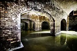 O reservatório de água que serve como base do Hall de Exibição, foi projetado pelo engenheiro civil Otto Lueger e construído entre os anos de 1877 e 1880, para abastecer os cidadãos de Darmstadt. Possui duas câmaras, com tetos abobadados e sustentados por pilastras. O reservatório foi usado até o ano de 1994 e as bacias são preenchidas com água até os dias atuais.[1]