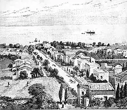 Localização de Sarona e Wilhelma (ver círculos cáqui), colônias de Templários Alemães posteriormente estabelecidas no interior de Haifa, no levantamento geográfico da Palestina -