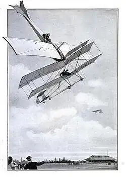 ...the Antoinette monoplane crashed on to the biplane, both machines falling to earth a mass of broken planes and tangled wires.
