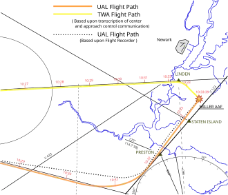 Não houve contato de rádio com os controladores de tráfego em nenhum dos aviões após a colisão, embora LaGuardia tivesse começado a rastrear uma aeronave não identificada e em movimento rápido de Preston até o marcador externo “Flatbush” de LaGuardia.