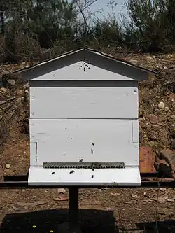 - Colmeia Lusitana: Colmeia de tamanho pequeno com 10 quadros, é uma adaptação das colmeias do tipo Langstroth e Dadant-Blatt feita pelo padre Manuel Tavares de Sousa (1872–1958).[3] Usada principalmente no norte de Portugal.