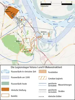Área imediata da atual cidade de Xanten com os castros Vetera I e II e a Colônia Úlpia Trajana