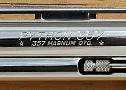 Pythons estavam disponíveis com canos de 2,5 in, 4 in, 6 in e 8 in.[1] O modelo de seis polegadas é geralmente o mais popular, e o modelo de 8 polegadas tinha uso planejado para caça. Uma versão com cano de 3 polegadas é bastante colecionada, apesar de não ser rara.[2]