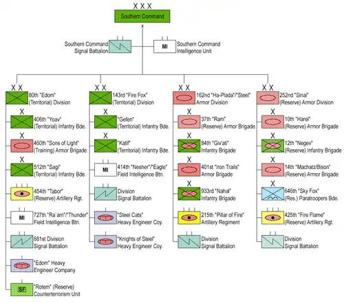 | Comandantes notáveis | Yigal Allon Moshe Dayan Yitzhak Rabin Ariel Sharon Israel Tal |