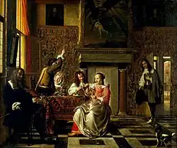 Pieter de Hooch | Rua da Rosa | Um dos quatro quadros que foram transportados para o Laranjeiro, Almada, pelo auto-intitulado "Robin das Artes".[7] A Conversação foi exposta na parede de um prédio no Largo Francisco Sanches, até ser novamente furtado. | ||