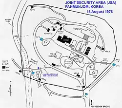 - ↑ a b c d Jon Rabiroff (3 de fevereiro de 2010). «Uncollected paperwork a sign of DMZ battle of wills». Stars and Stripes. Consultado em 3 de maio de 2013