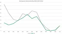 | Eleição | Votos válidos | % | Assentos | +/- |