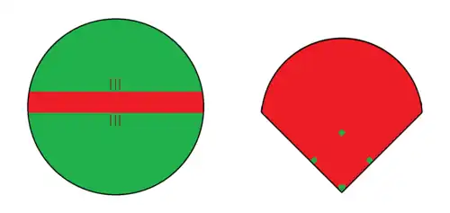 No criquete e beisebol, os jogadores do equipo ofensivo, que ficam cerca de uns "alvos", marcam pontos cuando um deles rebater a bola a distancia maior possivel dos jogadores defensivos e eles correm entre as areas verdes. O equipo defensivo pode eliminar os jogadores ofensivos por tocar a bola a um alvo (a area verde mesma no beisebol num force out, ou o wicket no criquete) se os jogadores ofensivos nao estao na area verde que tem o alvo. Partida de BeisebolPartida de Críquete
