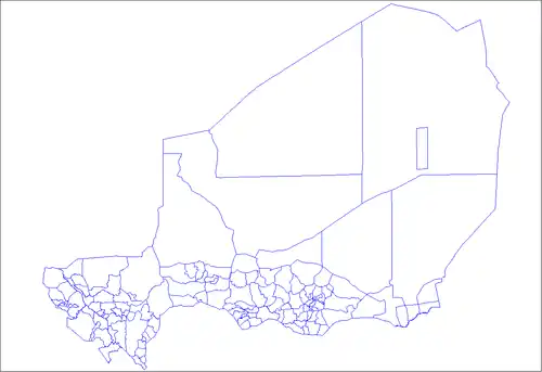Os Departamentos do Níger são subdivididos em comunas. Em 2005, nas sete Regiões e uma Área Capital, houve 36 départements, dividido em 265 communes, 122 cantons e 81 groupements.[1] As duas últimas categorias abrangem todas as áreas não abrangidas pelas Comunas Urbanas (população superior a 10.000) ou Comunas Rurais (população com menos de 10.000), e são reguladas pelo Departamento, que tem Comunas (desde 1999), prefeitos e conselhos eleitos.