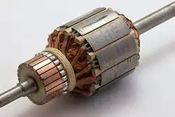 Um comutador é um dispositivo que muda o sentido da corrente elétrica de um circuito num motor elétrico ou gerador, permitindo a inversão do sentido da força que move a espira e promovendo a rotação.[1]