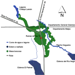 Com o estudo das Ruínas do km 75 se pode estabelecer definitivamente que Concepción del Bermejo esteve localizada a uma distância de aproximadamente 60km a oeste do rio Bermejo, localizado nas coordenadas 26° 08' S 60° 19' O. O sítio localiza-se num local conhecido como “O desterro”, ao norte do Departamento Maipú (Jurisdição do município de Três Isletas), e apenas 2km do limite com o Departamento General Güemes.[3]