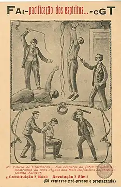 Folheto referente às torturas da polícia política aos anarquistas. - a eliminação do capitalismo.