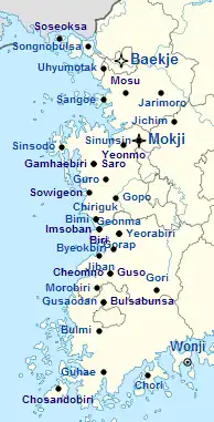 - ↑ «1500년전 왕국 마한 '역사의 퍼즐' 맞추다 원문보(1500 anos atrás reino Mahan 'quebra-cabeça da história')». Jornal Hankyoreh (em coreano). 19 de janeiro de 2014. Consultado em 10 de abril de 2019