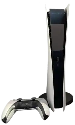 | Um PS5 Digital Edition com o controlador DualSense | Um console padrão PS5 com o controlador DualSense | Um Xbox Series S com seu controlador | Um Xbox Series X com seu controlador | |||
