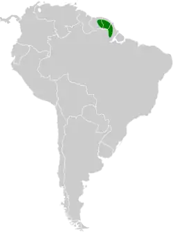 Pode ser encontrada nos seguintes países: Brasil, Guiana Francesa e Suriname.[1]