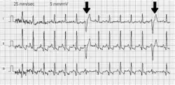 - ↑ Worthington, JM; Gattellari, M; Leung, DY (April 2010). "'Where there's smoke ...': are premature ventricular complexes a new risk factor for stroke?". Stroke; a journal of cerebral circulation. 41 (4): 572–3. doi:10.1161/strokeaha.109.574426. PMID 20167909.