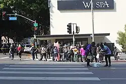 - ↑ Fry, Hannah; Lozano, Carlos (17 de julho de 2021). «LAPD orders crowd to disperse during protests over transgender rights at Koreatown spa» [LAPD ordena dispersão de multidão durante protestos sobre direitos transgênero em spa de Koreatown]. Los Angeles Times (em inglês). Consultado em 11 de dezembro de 2025. Cópia arquivada em 18 de julho de 2021