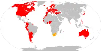 - ↑ a b c d Council of Europe. «Chart of signatures and ratifications of Treaty 185 ("Lista de assinaturas e ratificações do Tratado 185")». Treaty Office (em inglês). Consultado em 7 de agosto de 2021