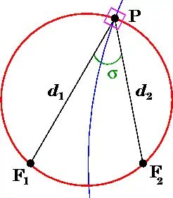 e sua distância ao foco no plano definido por φ é dado por