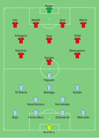 - ↑ «Match 8 : Argentina vs Chile». Copa América Centenario. 6 de junho de 2016. Consultado em 6 de junho de 2016. Arquivado do original em 6 de junho de 2016
