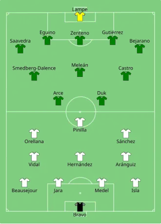 - ↑ «Dobletes de Alexis y Vargas clasifica a Chile» [Braces for Alexis and Vargas qualify Chile] (em espanhol). CONMEBOL. 14 de junho de 2016. Consultado em 14 de junho de 2016