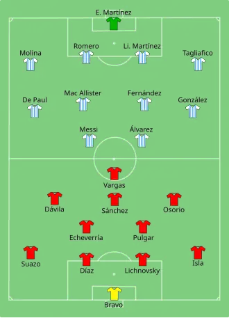 - ↑ a b «Argentina vs Peru live score, H2H and lineups». Sofascore.com. 29 junho 2024. Consultado em 29 junho 2024