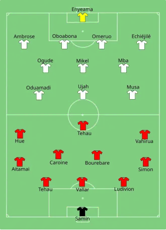 - ↑ a b «Tactical Line-up – Group B – Taiti-Nigéria» (PDF) (em inglês). FIFA. 17 de junho de 2013. Consultado em 17 de junho de 2013
