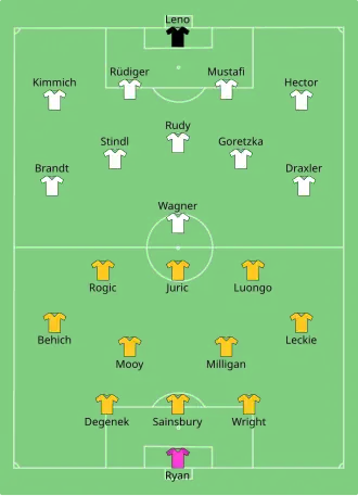 - ↑ «Estatísticas: Austrália x Alemanha». Futebol. Consultado em 8 de janeiro de 2017