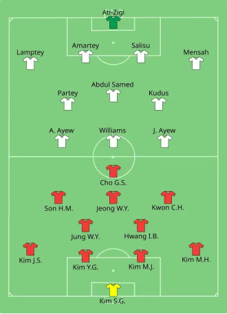 - ↑ «Kudus hits Ghana winner in breathless Korea Republic clash». FIFA. 28 de novembro de 2022. Consultado em 28 de novembro de 2022