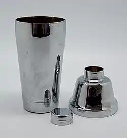 - A coqueteleira Cobbler: uma coqueteleira de três partes que tem um crivo na parte superior e um recipiente para o coquetel, além de uma tampa. A tampa frequentemente é utilizada como medida para destilados e outros líquidos.