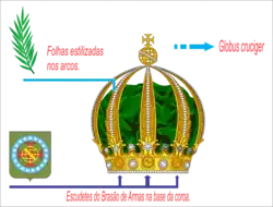 ![]() A Coroa de D. Pedro I sem os adornos que foram retirados para confeccionar a coroa de Pedro II do Brasil.