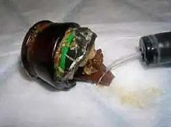 - ↑ Stephens PJ, Taff ML (junho–falhou de undefined). «Rectal impaction following enema with concrete mix». The American Journal of Forensic Medicine and Pathology. 8 (2): 179–82. PMID 3649167. doi:10.1097/00000433-198708020-00019 Verifique data em: