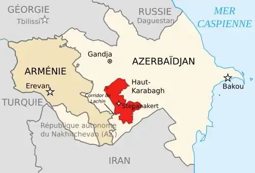 Após o acordo que encerrou o conflito armado no Alto Carabaque que se desenvolveu entre o Azerbaijão e a Armênia em 2020 , o Lachín corredor será responsável por forças de paz da Federação Russa por um período de cinco anos.[1]