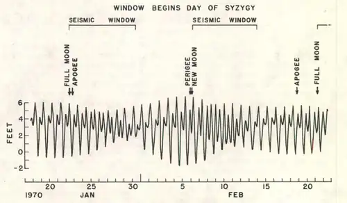 A teoria afirma que em períodos de sizígia os efeitos combinados das marés do sol e da lua, tanto diretamente ou em resultado da maré terrestre na própria crusta terrestre, quer indiretamente pela carga hidrostática devido às marés oceânicas, [3] deve ser capaz de desencadear terramotos em rochas que já estão sob tensão ao ponto de c, e, portanto, uma maior proporção de sismos deve ocorrer em momentos de máxima tensão mecânica induzida pela força de maré, como nas marés vivas das luas nova e cheia.